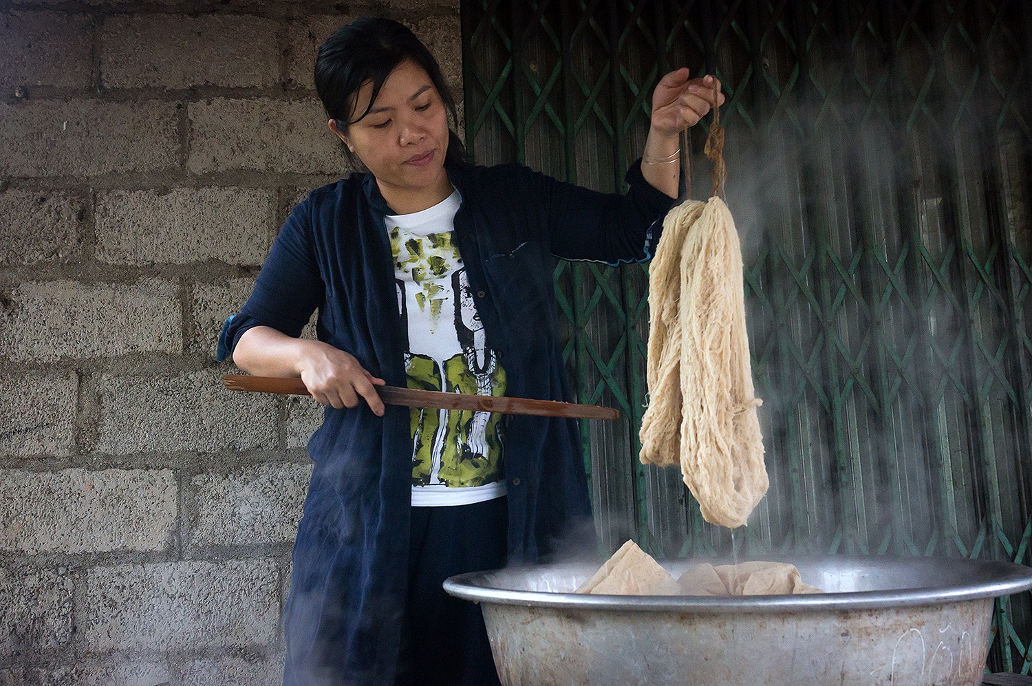I had a fantastic and memorable week in beautiful Cao Bang learning about natural dye and weaving from Thảo and the Nùng An women. We covered the extensive processes of planting, harvesting and fermenting indigo, as well as making indigo paste and dye. As I had only ever experimented with natural dyes by myself at home, it was a real treat to learn from Thảo and the Nùng An women about indigo, yam Read more