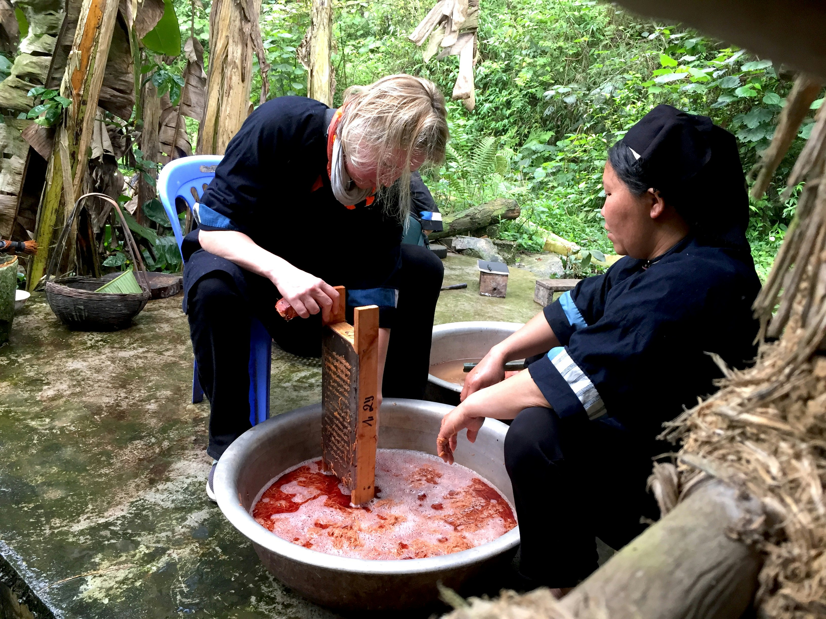 This VAWAA did not only expand my understanding of various natural dyes, especially indigo, but also connected me with an amazing community of artisans. The Nùng An women were so incredibly welcoming and open to sharing their crafts and traditions with us. It was so rewarding to to spend time with Thảo and watch her relationship with the Nùng An women and the relationship they've developed over th Read more