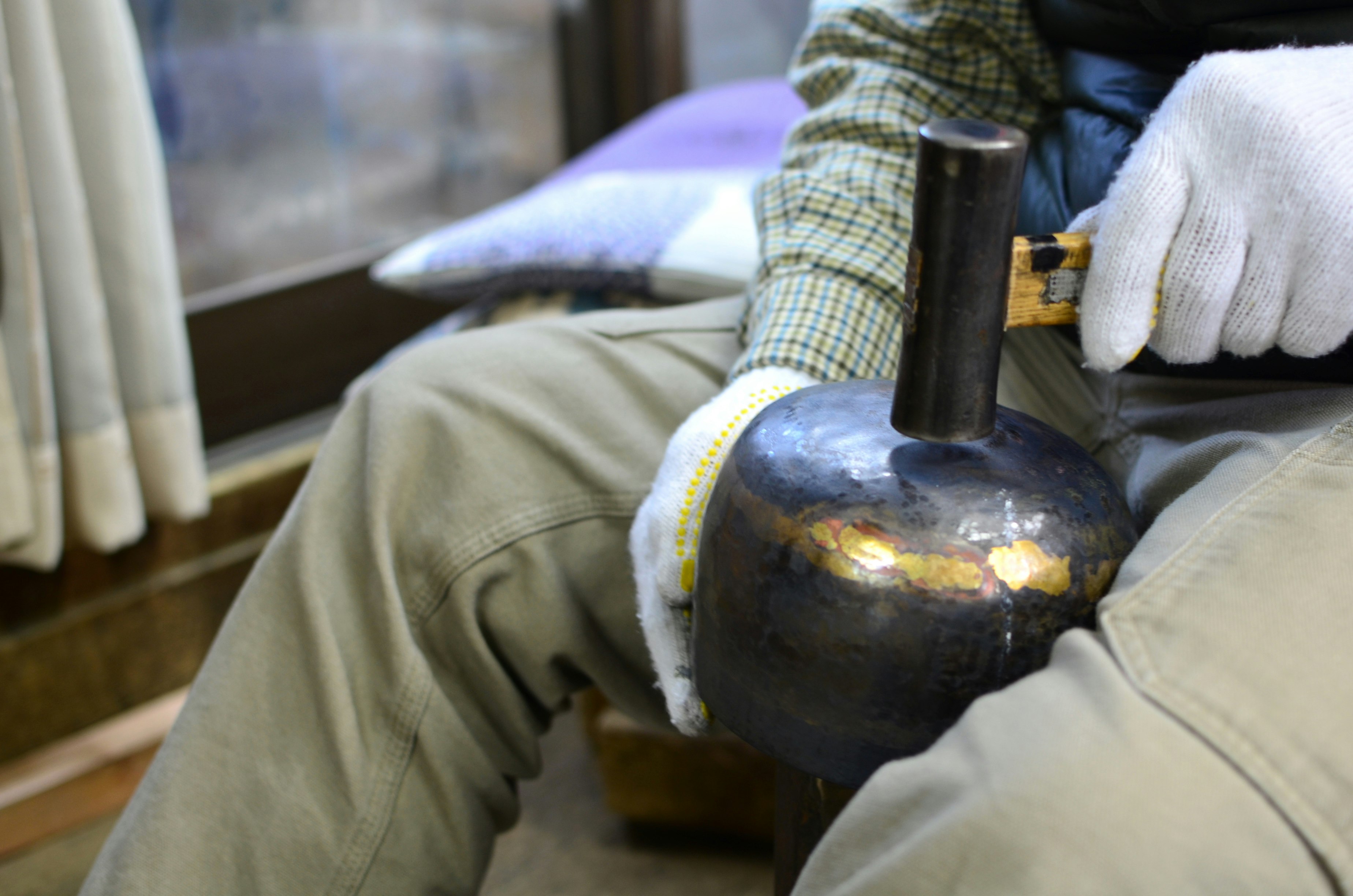 - Hammering metal (brass, tin).