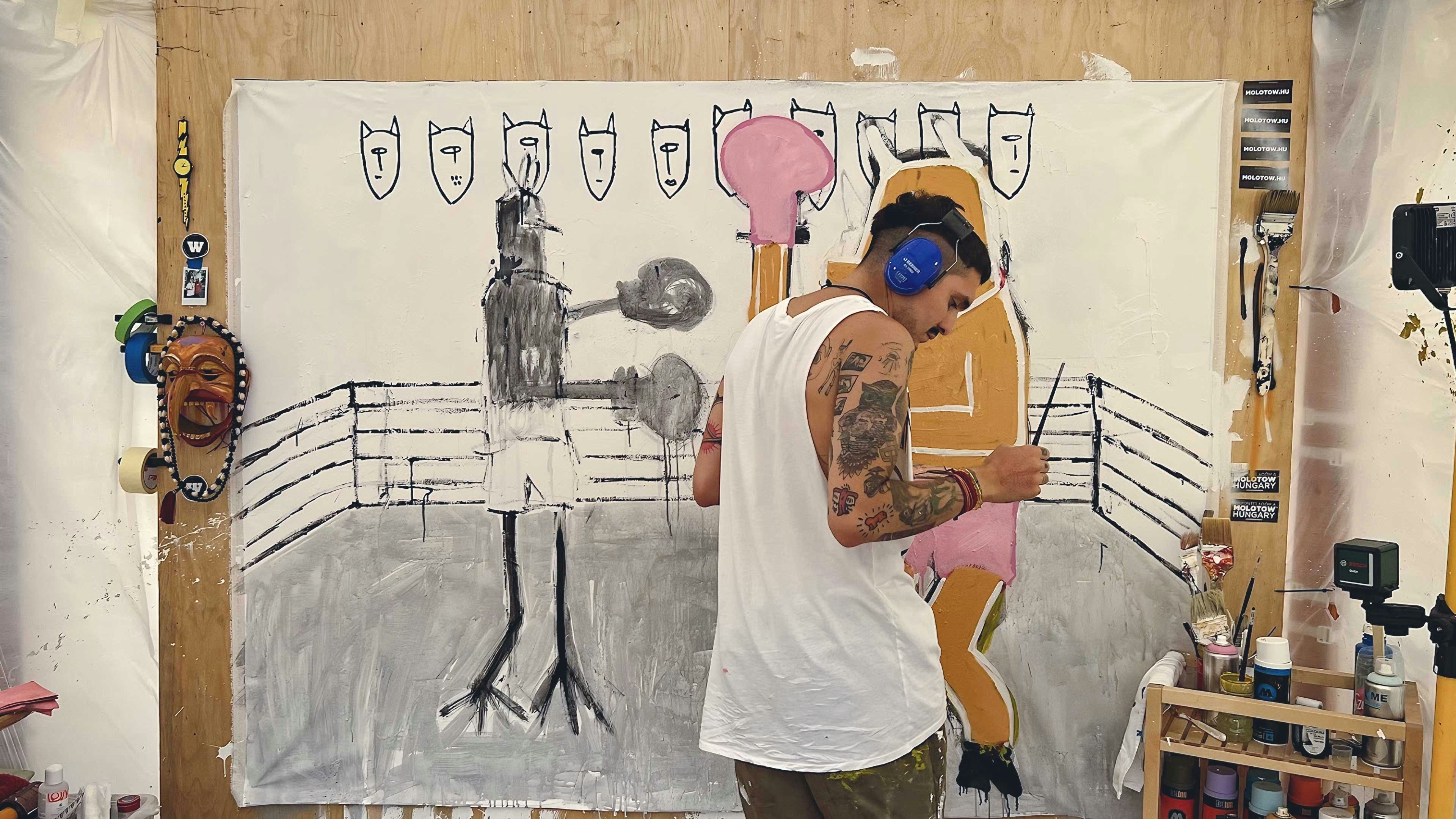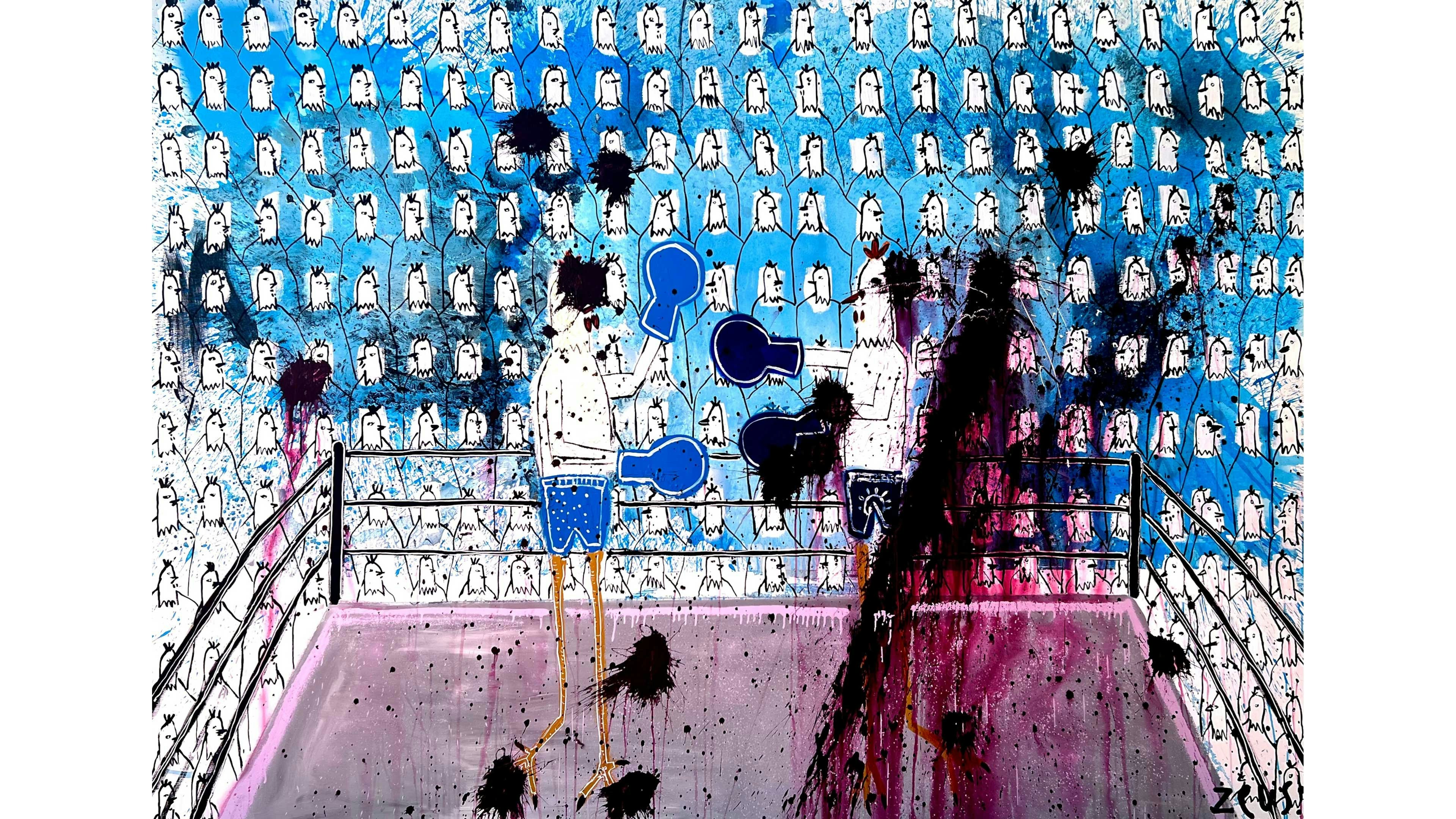 Now residing in Budapest, Zeus's painting style reflects the influence of the city's constructivism, geometric aesthetics, and his love for photography. Whether through small sketches or large-format canvases, his disciplined work ethic breathes life into mythical, emotive worlds featuring symbols, distinctive characters, and bold colors. His artworks serve as compelling invitations, challenging viewers to reconsider their emotions, experiences, and realities.