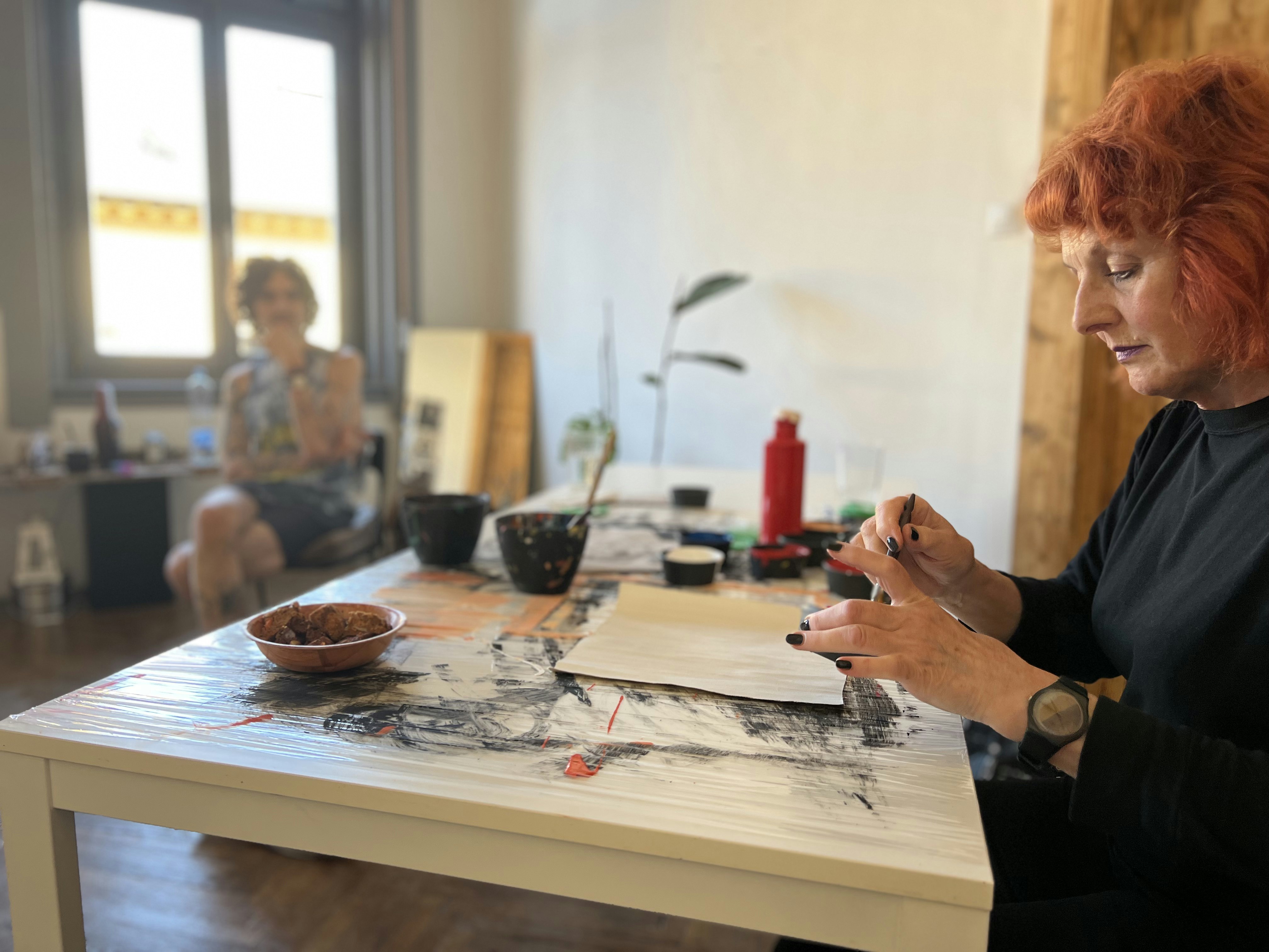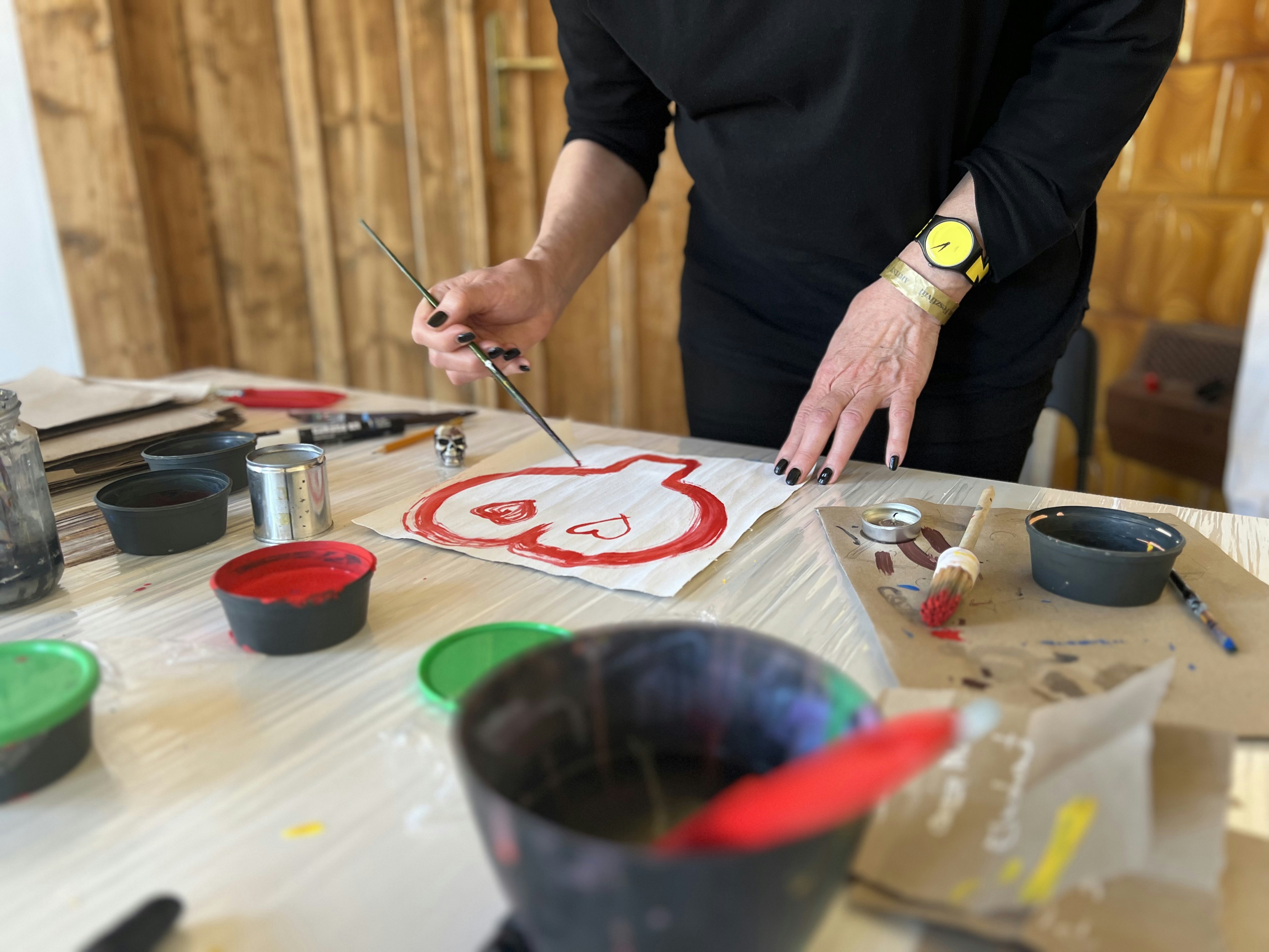 - Guided playful sensory exercises to help develop imagination and break out of your comfort zone such as blind painting, immersion in silence or loud sounds, and painting with your non-dominant hand.