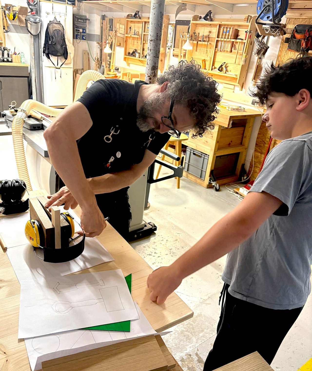 We had the most wonderful time with Juan Pablo this summer. My son (12) and I spent 4 days doing woodworking together. I made a charging station box, and my son made a shelf for his baseballs and a headphone holder. Juan Pablo took us the design museum on the first day to sketch ideas and understand all the forms of woodworking. He was patient and attentive, and sent us a really helpful box of finished projects after our VAWAA. Thank you for everything, Juan Pablo!!