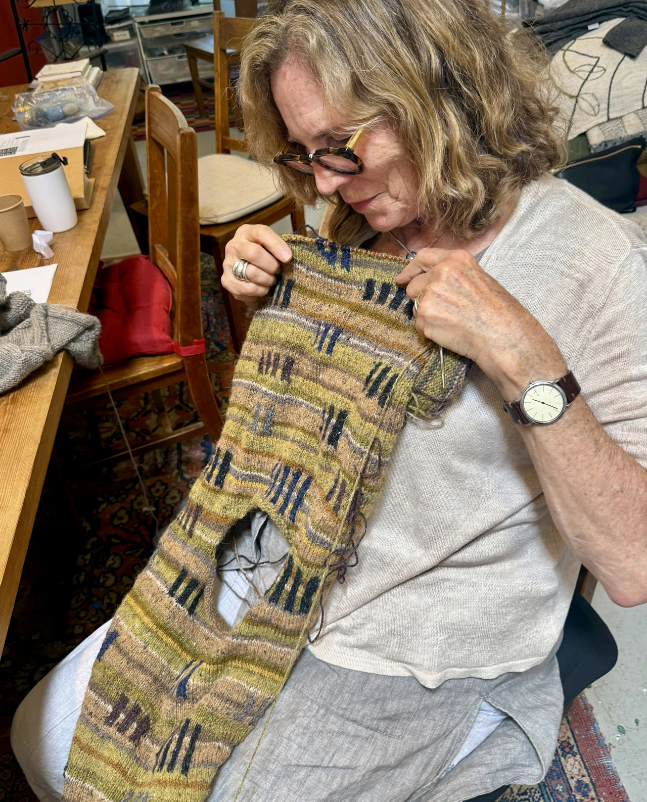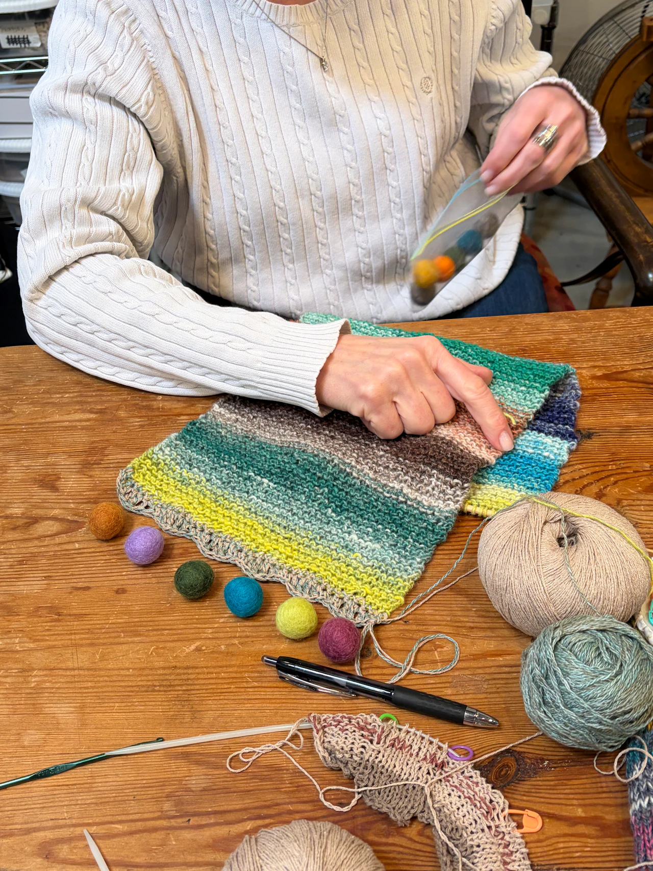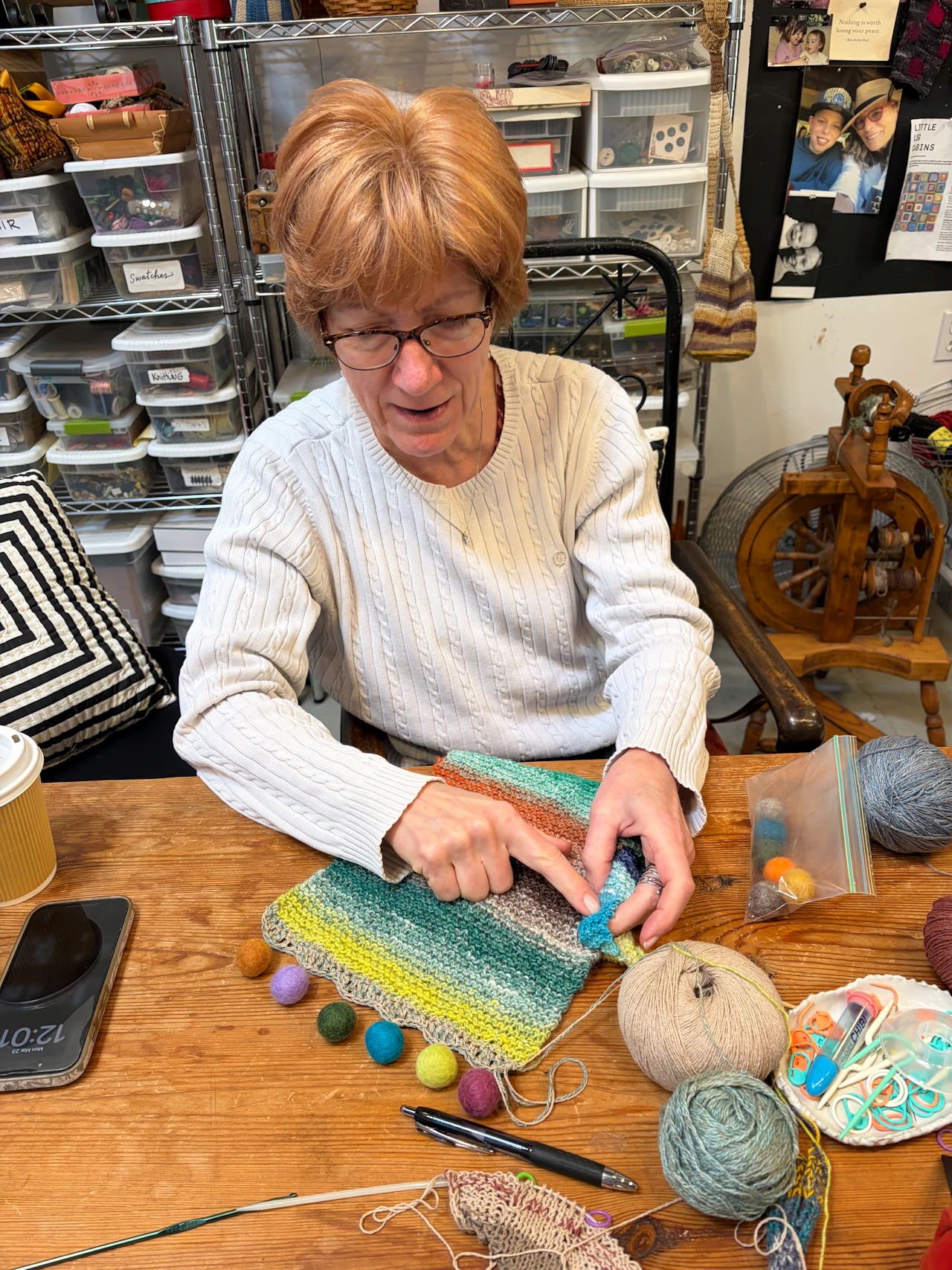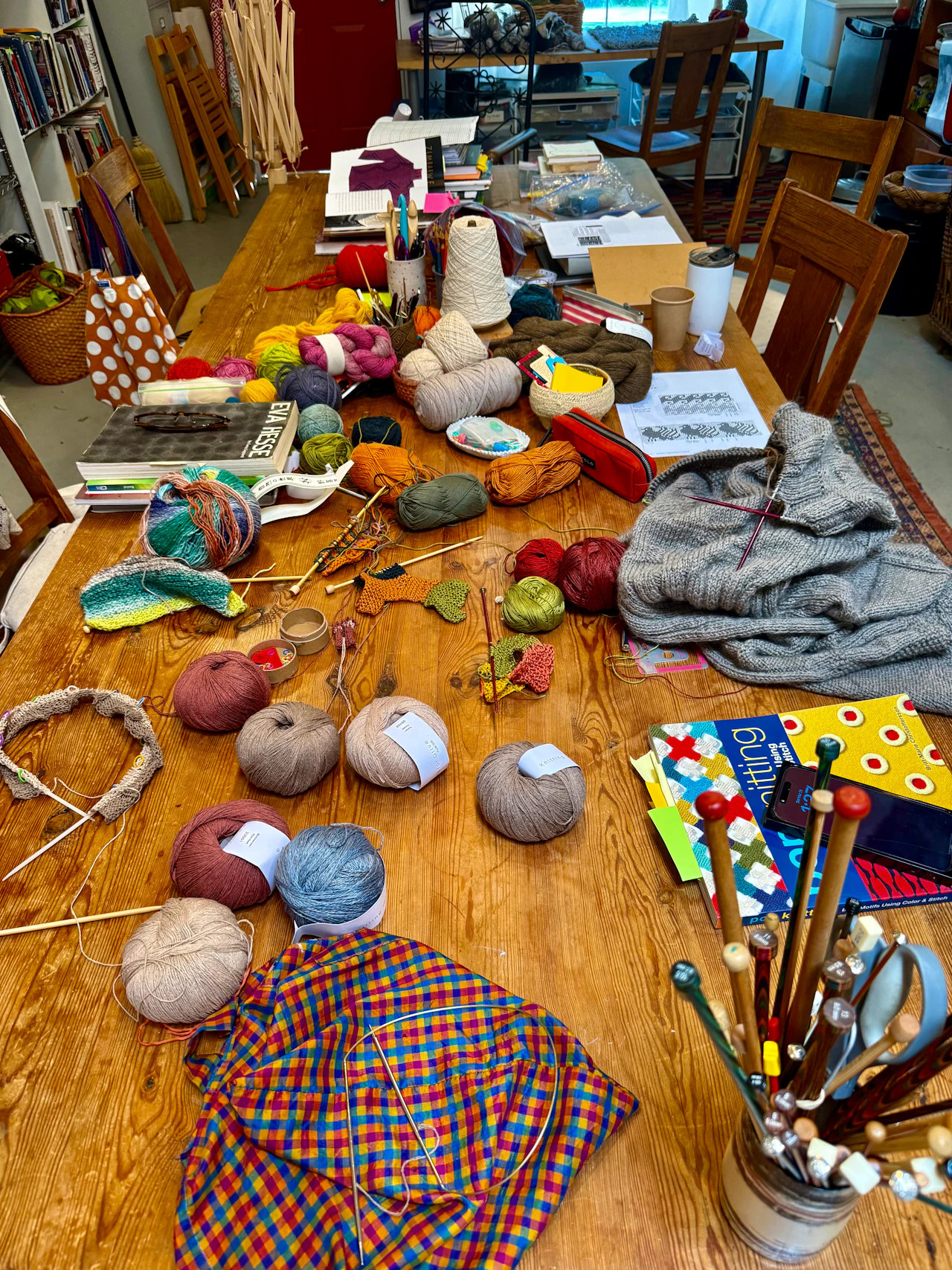 Lori is wonderful - I wish I could give her more than five stars. We worked each day at her studio table, surrounded by yarns, tools, and Lori’s own art. She is the most generous of teachers. She gave me new technical skills, guidance for designing projects, and shared ways of thinking about art and an artist’s life. She read aloud to me each day from books in her library. In addition to exploring colors and stitches, she shared the beauty of California’s Sonoma wine country. We visited the local yarn store, book store, farmer’s market, and speakeasy. I tasted local wine and we walked outside among the profusion of Spring blooms. I stayed in Lori’s lovely cabana, sleeping with the windows open, listening to frogs at night and birdsong in the morning.
