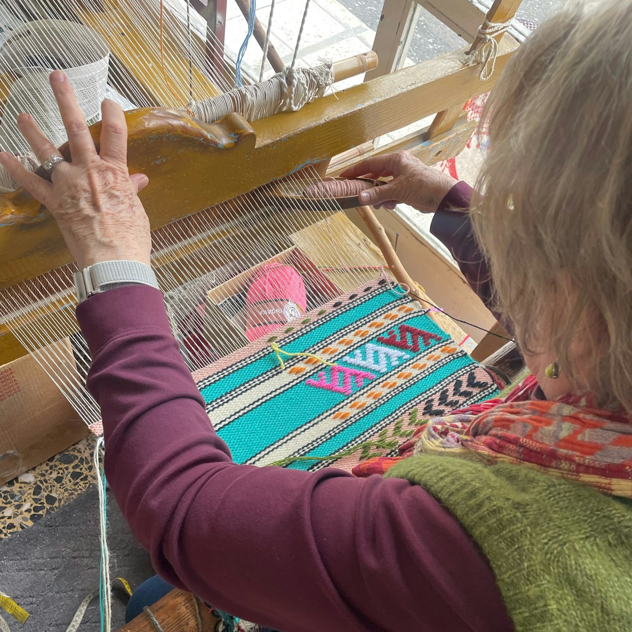 I have been studying both weaving and embroidery. Discovering the unique Cretan technique of embroidery incorporated within the weave structure I was totally excited. And the location!! Crete. I left with an appreciation of Cretan design. I can recreate the process on my own loom. And I am excited to experiment. And have considered another visit in the fall.