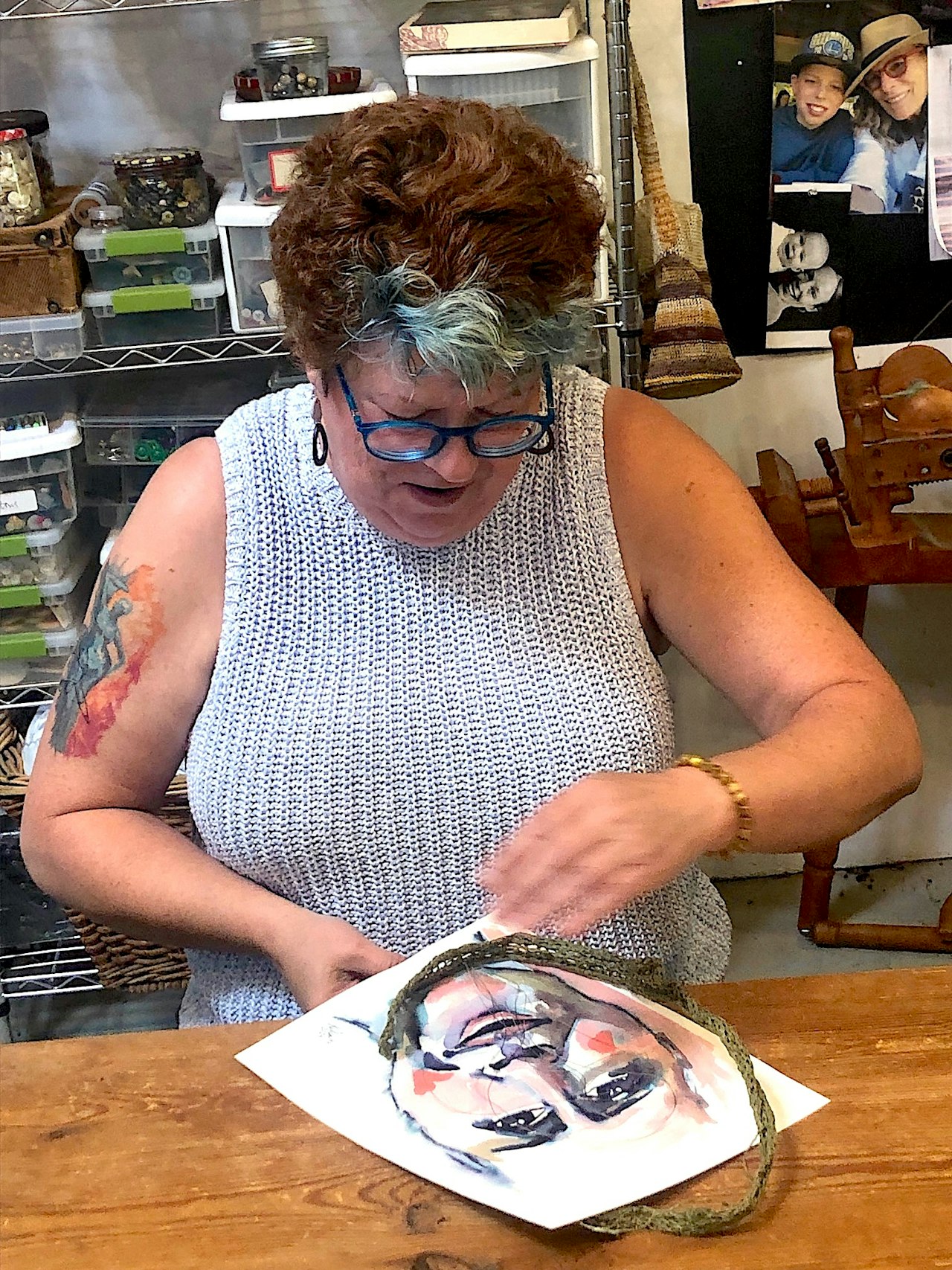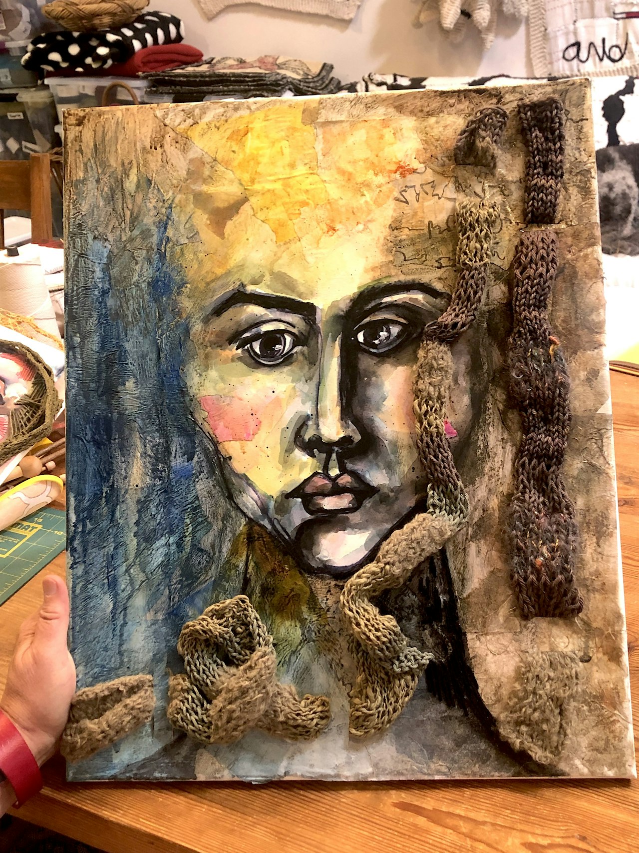 I wasn't sure what to expect. I am not a world traveler but Lori was within driving distance and offered an opportunity I was interested in. I brought my current paintings and fiber supplies. While talking to Lori, we came up with a plan to expand what I have been working on. We sat across from each other and worked on our own projects while she gave me feedback on the new direction I was going. She gave me a community that I'd been lacking.