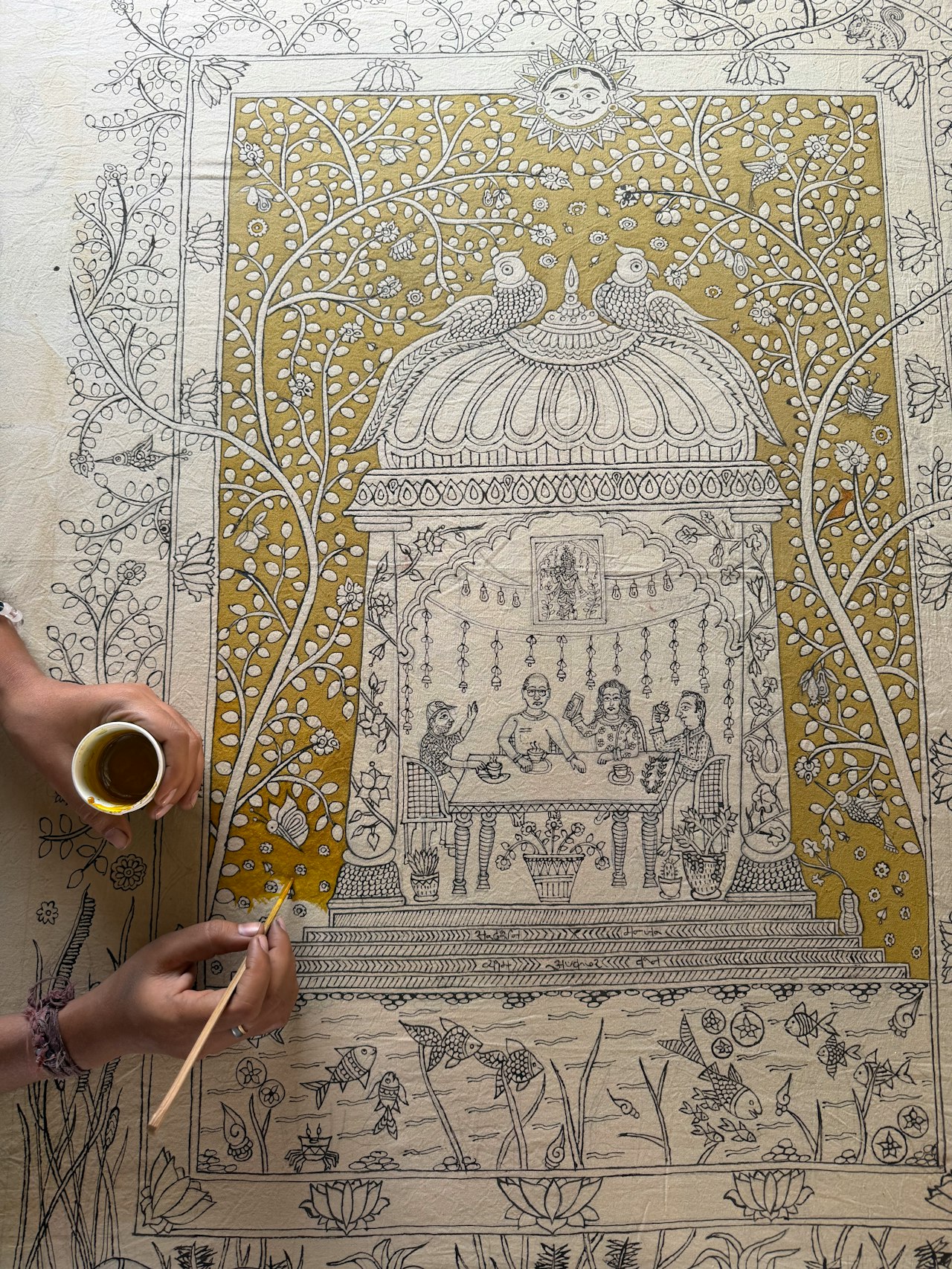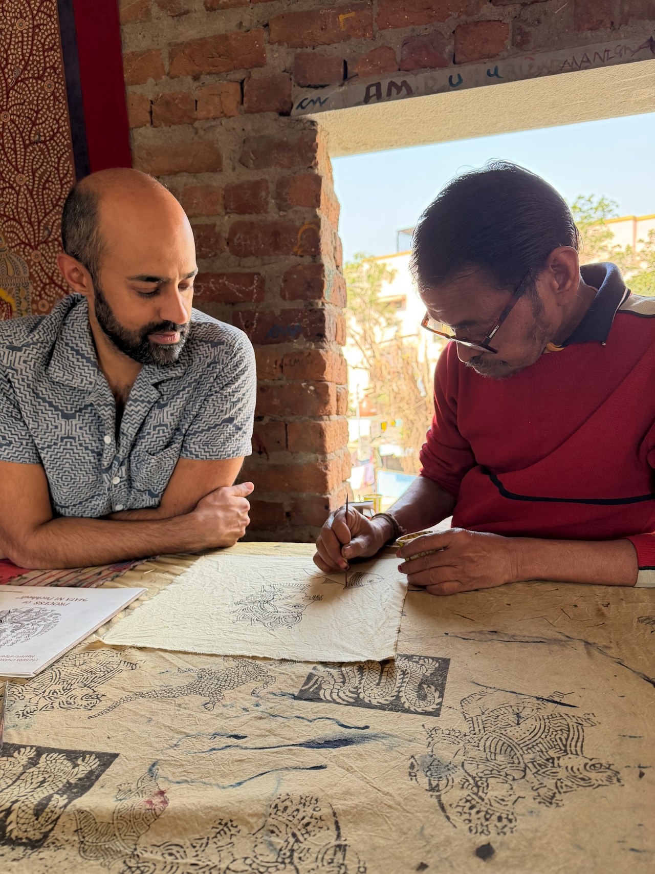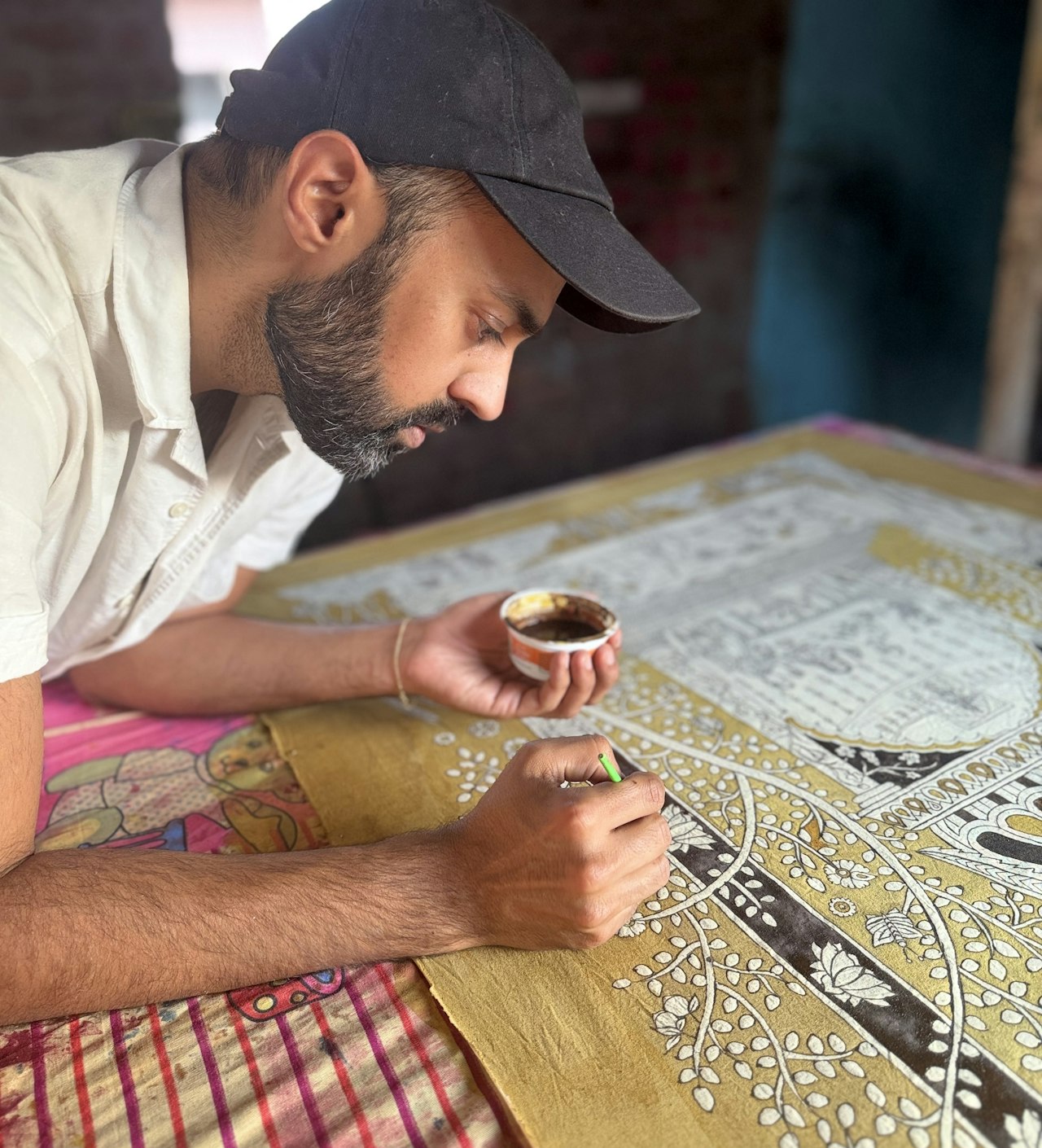 An absolutely incredible experience. I confess I knew nothing about this art form and had thought I wanted to spend my time learning textile crafts that had made their way to the mainstream (like block printing). The VAWAA team encouraged me to consider this trip instead, and I’m so glad they did. Chandrakant, Niral and their family are extraordinary artists, teachers, and I can now say, friends. Over five days, I learned the history, meaning, and techniques of this beautiful art form. And I am leaving with an art piece and stories I will cherish for many years to come.